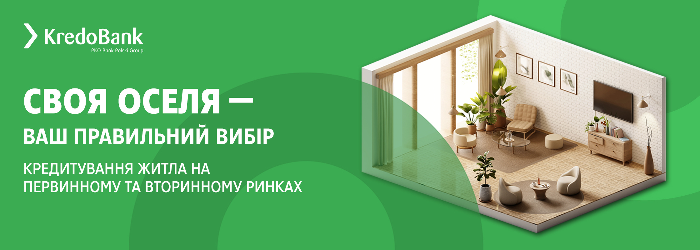 Кредобанк пропонує купити житло у кредит на вигідних умовах. В іпотеку можна придбати як нове житло, так і нерухомість на вторинному ринку.